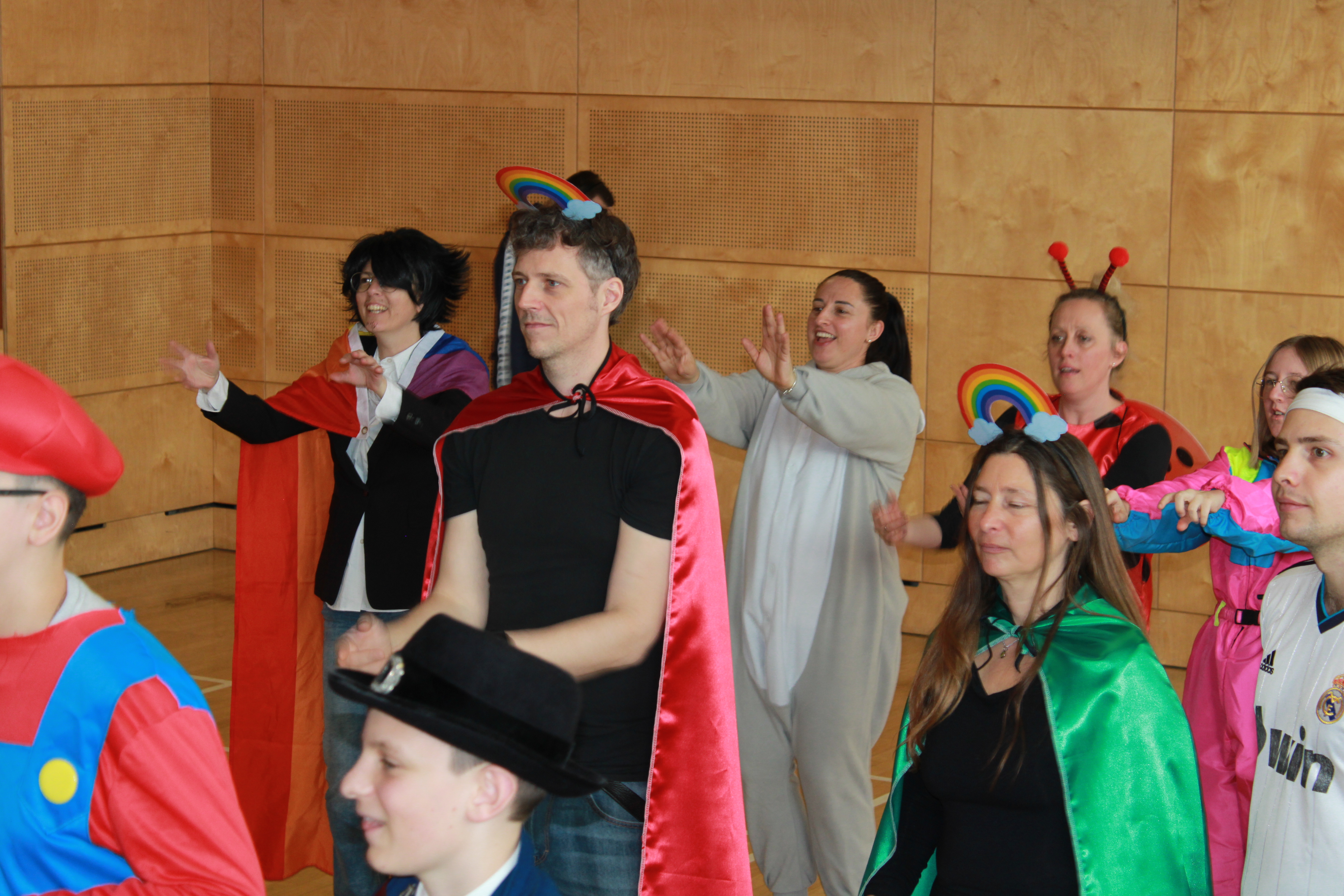 Am Dienstag, 17. Februar 2026, ließen wir die zur Tradition gewordene Faschingsparty bei uns an der Schule steigen. Zum Einstieg tanzten alle Schüler/innen und Lehrer/innen zum Lied „Cotton Eye Joe“ einen einstudierten Tanz. Anschließend konnten die Schüler/innen unterschiedliche Angebote im Haus wahrnehmen, beispielsweise „Wetten, dass …“, Luftballontiere gestalten, Karaoke singen und vieles mehr. Die Feier endete mit einer Maskenprämierung, welche eine „Tic Tac“-Verpackung (Einzelwertung) und gefakte Lehrer/innen (Gruppenwertung) für sich entscheiden konnten.
