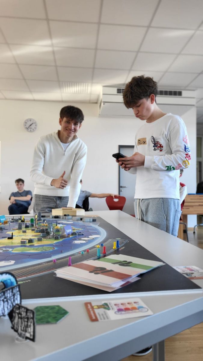 Die Schüler*innen handelten, verhandelten, diskutierten, trafen Entscheidungen und erlebten unmittelbar deren Auswirkungen. Anfangs standen häufig wirtschaftliche Interessen der eigenen Standorte im Vordergrund, doch im Verlauf des Spiels wurde deutlich, wie sehr globale Kooperation, Empathie und langfristiges Denken für eine nachhaltige Zukunft notwendig sind.