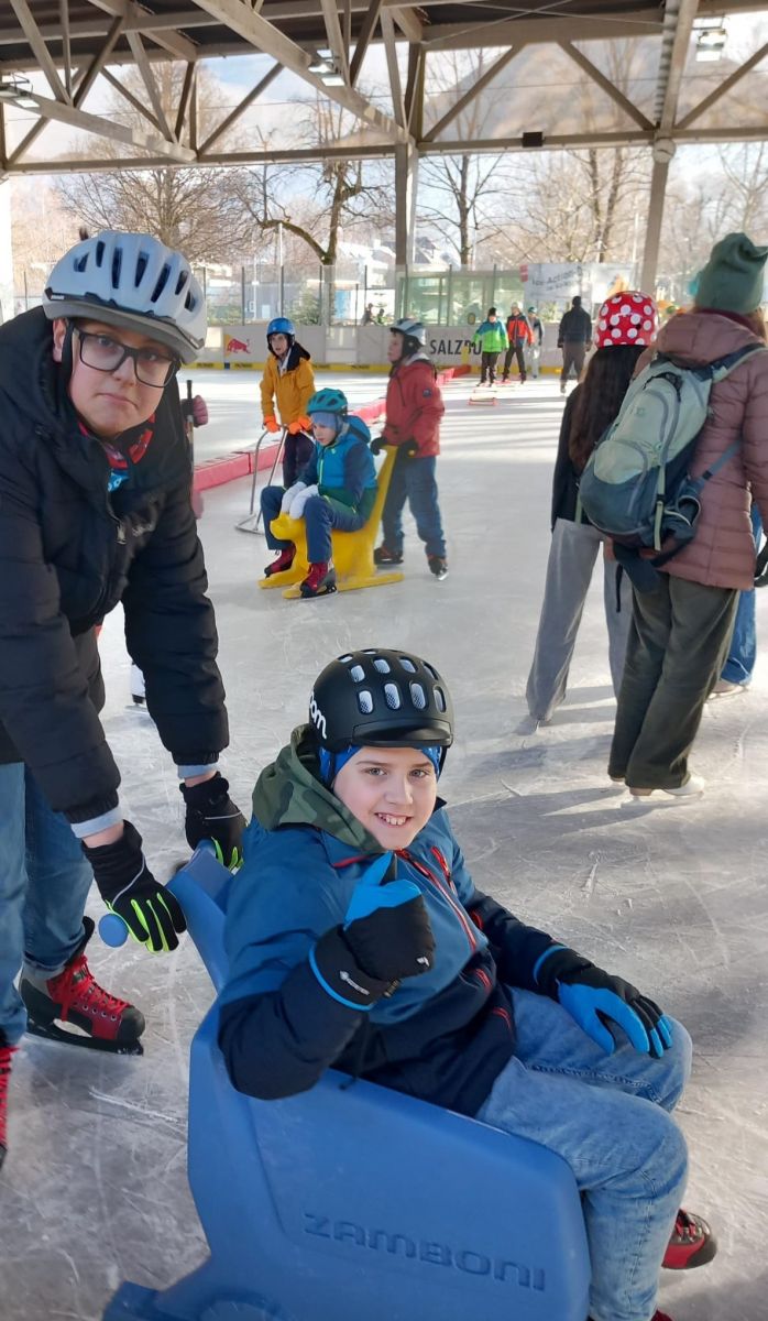 Gemeinsam mit Schülerinnen und Schülern aus verschiedenen Schulen tauchten unsere Klassen in ein abwechslungsreiches Programm ein, das von engagierten Salzburger Vereinen gestaltet wurde. An mehreren Stationen konnten die Kinder unterschiedliche Eissportarten ausprobieren, Neues entdecken und erste Erfahrungen am Eis sammeln – begleitet von erfahrenen Trainerinnen und Trainern.