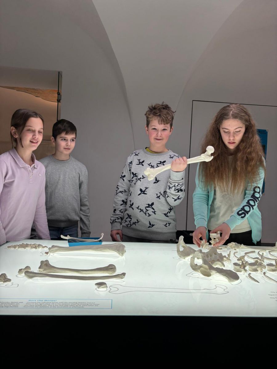 Am Freitag ging es für die 2.Klasse nach Hallein. Dort besuchten wir das Keltenmuseum. Aufgeteilt in 2 Gruppen erforschten wir im Knochenlabor die Knochenfunde aus der Zeit der Kelten und durften auch gemeinsam ein Skelett zusammensetzen. Anhand der Knochengröße konnten wir dann herausfinden, ob es sich um ein weibliches oder männliches Skelett handelt.